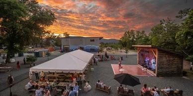 Pro Re Nata's Mountain View Patio may be rented independently, or added on to a rental of the Original Brewery Taproom to add outdoor seating for guests. Space recommended for 40-50 guests.